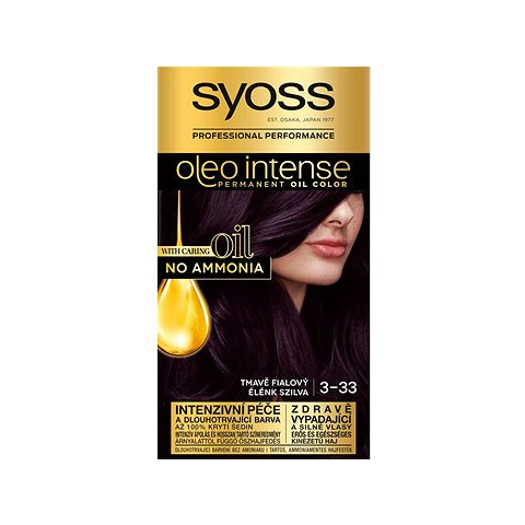 Hajfesték - lila árnyalat, tartós típus, természetes termék, színélénkítő hatás, minden hajtípusra, kesztyű, applikátor, ecset, hajápoló és használati útmutató a csomagban, 50 ml űrtartalom Sokszor fested otthon egyedül a hajad és a szuper lila az egyik imádott színed? Ez esetben a kiváló SYOSS 50 ml kapacitású hajfesték tetszeni fog neked. A népszerű SYOSS Oleo Intense 3-33 Élénk szilva