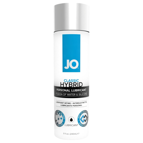 System JO Classic Hybrid - vegyesbázisú síkosító (240ml) Főbb tulajdonságok: -hosszantartó síkos hatás -természetes testsíkosság érzet -víz- és szilikonbázisú formula -bőrgyógyászatilag, klinikailag tesztelt -testbarát -anális és hüvelyi használatra eg