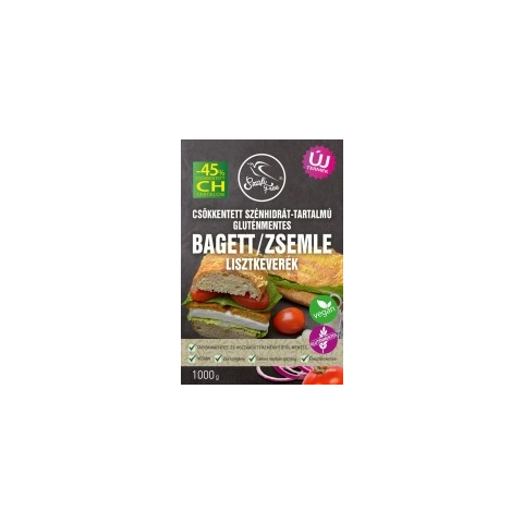 A lisztkeverék segítségével 45%-kal csökkentett szénhidráttartalmú búzalisztmentes, tojásmentes, olajmentes, élesztőmentes és hozzáadott keményítőtől (tápióka, kukorica, rizs, burgonya) mentes, gluténmentes vegán bagettet, vagy zsemlét készíthetünk. Össz