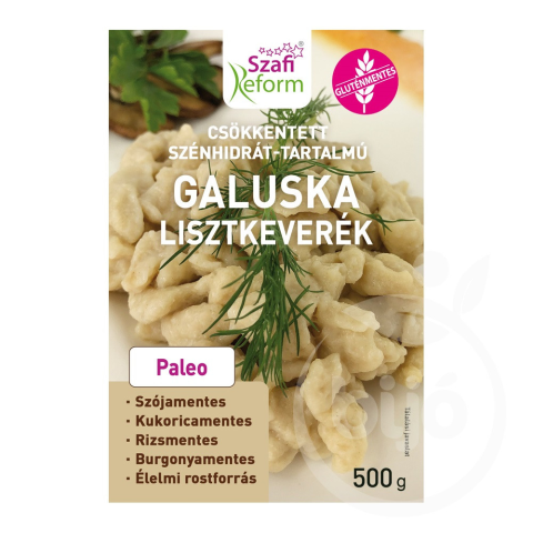 SzójamentesKukoricamentesRizsmentesBurgonyamentesÉlelmi rostforrás Összetevők: Tápióka keményítő, bambuszrostliszt, szezámmagliszt, útifűmaghéjliszt, kókuszliszt, batáta liszt. Hozzávalók (350 gramm) nokedlihez:70 g Szafi Reform szénhidrátcsökkentett