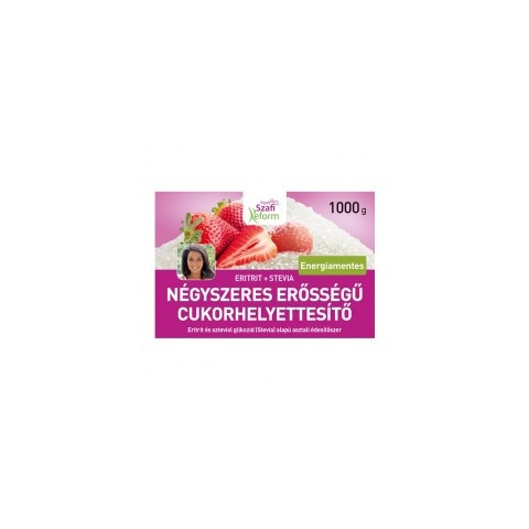 Szafi Reform négyszeres erősségű édesítő (negyedannyi 1:4) 500 g Eritrit és szteviol glikozid (stevia) alapú asztali édesítőszer. Szafi Reform 0 kalóriás cukorhelyettesítő eritrittel és szteviol glikozidokkal, 0% felszívódó szénhidráttartalommal. A Sz