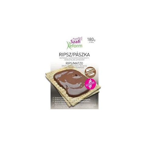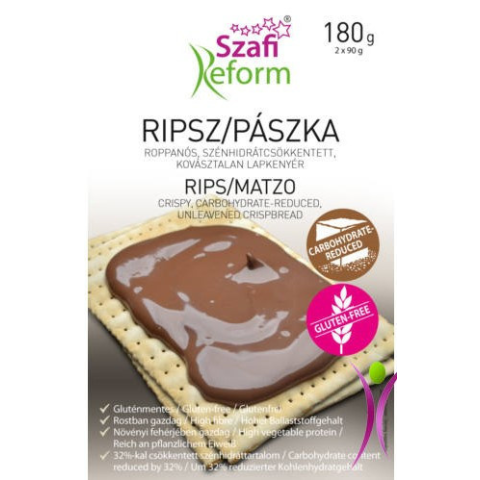 Szafi Reform Szénhidrátcsökkentett Ripsz / Pászka (gluténmentes) 180g Roppanós, szénhidrátcsökkentett, kovásztalan lapkenyér GluténmentesRostban gazdagNövényi fehérjében gazdag32%-kal csökkentett szénhidráttartalom Összetevők: Gluténmentes zabpehelylis
