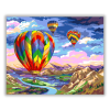 A fellegekben - számfestő készlet – 40×50 cm (Keret nélkül) A festmény élénk színei az égbe emelnek, mintha a szabadság könnyedségét éreznénk. Egy történet bontakozik ki előttünk, ahol a léggömbök színes álmai a távoli hegyek fölé repítenek. A vibráló szí