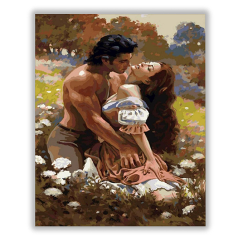 A mezőn - számfestő készlet – 40×50 cm (Keret nélkül) Ez a festmény egy szenvedélyes találkozást ábrázol a természet ölelésében, amely a nézőt az érzelmek tengerébe vonzza. A kép egy romantikus történetet mesél el, amelyben a pillanat varázsa és az érinté