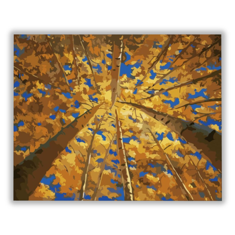 A nyárfák alatt - számfestő készlet – 40×50 cm (Keret nélkül) A festmény meleg, őszi hangulatot áraszt, amely az elmúlás szépségét ünnepli. Egy történet bontakozik ki a természet csendes nyugalmáról és az idő múlásáról. Az arany és barna árnyalatok harmon