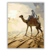 A sivatagban - számfestő készlet – 40×50 cm (Keret nélkül) A sivatagi naplemente csendes nyugalma öleli körbe a festményt, amely egy magányos utazó történetét meséli el. A homokdűnék aranyló színei és a háttérben derengő égbolt misztikus harmóniát teremte
