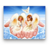 Angyalok tenyérben - számfestő készlet – 40×50 cm (Keret nélkül) A festmény békés nyugalmat áraszt, mintha egy álombéli világ kapuját tárná fel. Két angyal szelíd jelenléte mesés történetet sugall, ahol a gondoskodás és a szeretet uralkodik. A kék ég és a