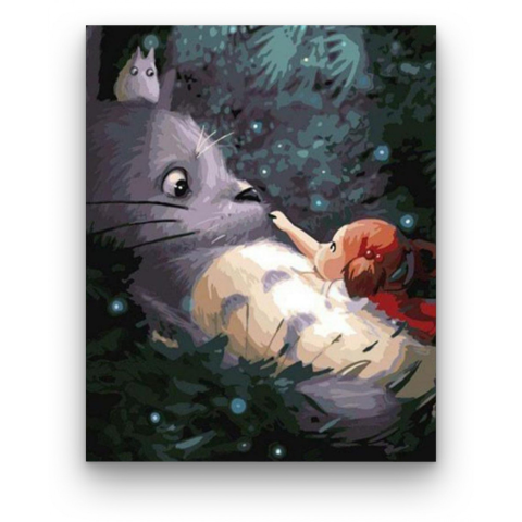 Aranyos Állatok - számfestő készlet – 40×50 cm (Keret nélkül) A festmény meghitt, varázslatos hangulatot áraszt, mintha egy mesebeli világba repítene. Egy titokzatos találkozás történetét meséli el, ahol a természet és a fantázia határai elmosódnak. A söt