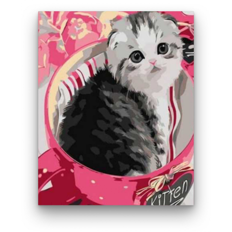 Számfestő Aranyos Kiscica a Tálban - akciós számfestő készlet (20x30cm)
