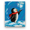 Aranyos pingvin - számfestő készlet – 40×50 cm (Keret nélkül) A festmény vidám, játékos hangulatot áraszt, amely mosolyt csal a néző arcára. Egy kedves történet bontakozik ki egy pingvin kalandjáról a jeges tájon. A kék és fehér árnyalatok dinamikus kontr