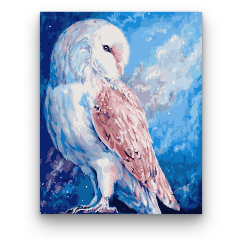 Bagoly - számfestő készlet – 40×50 cm (Keret nélkül) A festmény nyugodt, misztikus hangulatot áraszt, mintha egy csendes éjszakai erdő mélyére repítene. A képen szereplő bagoly titokzatos történetet mesél el, ahogy figyelmesen szemléli a világot. A kék és