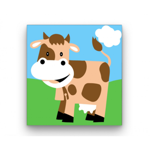 Boci - gyerek számfestő készlet – 20×20 cm (Keret nélkül) Ez a kép egy vidám bocit ábrázol, aki a zöld mezőn sétálgat a kék ég alatt. A boci mosolya biztosan felvidítja a gyerekeket, miközben színezik a kedves foltjait. Tökéletes választás az első festős