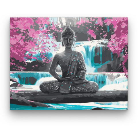 Buddha Zen - számfestő készlet – 40×50 cm (Keret nélkül) Ez a festmény nyugodt és békés légkört áraszt, amely a szemlélőt belső harmóniára hívja. A kép egy titokzatos történetet mesél el egy csendes, rejtett szentélyről. A rózsaszín és kék árnyalatok harm