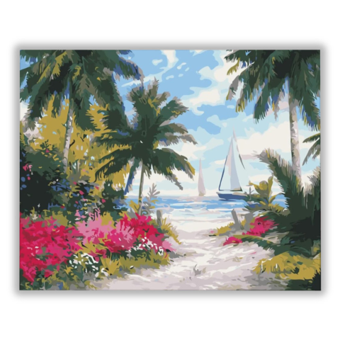 Csodálatos tengerpart - számfestő készlet – 40×50 cm (Keret nélkül) Ez a festmény a nyugalom szigetére repíti a nézőt, ahol a tengerparti szellő lágyan simogatja az arcot. A kép története egy idilli napot mesél el, ahol a természet és az ember harmóniában