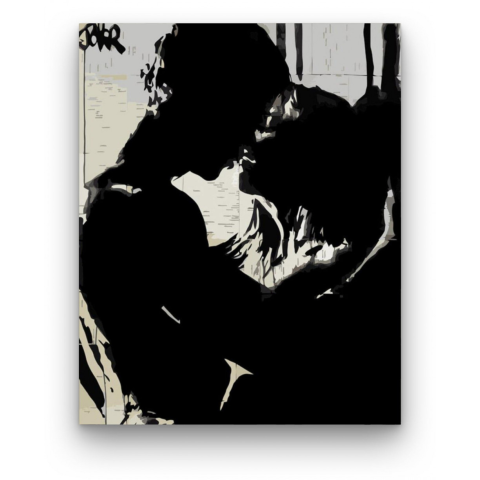 Csók - számfestő készlet – 40×50 cm (Keret nélkül) A festmény varázslatos hangulatot áraszt, amely azonnal magával ragadja a nézőt. Egy romantikus történet bontakozik ki a szemünk előtt, ahol az érzelmek szinte tapinthatóak. A meleg színek és a lágy hátté