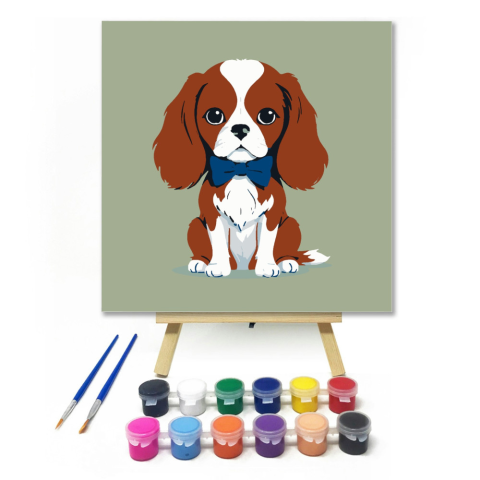 Csokornyakkendővel- gyerek számfestő készlet – 20×20 cm (Keret nélkül) Ez a kép egy bájos kutyust ábrázol, aki elegáns csokornyakkendőjében várja, hogy barátkozzon veled. A vidám színek és barátságos tekintete garantáltan mosolyt csal az arcodra. Tökélete