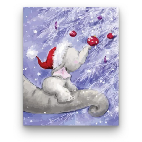 Díszítő kiselefánt - számfestő készlet – 40×50 cm (Keret nélkül) A festmény békés és meghitt hangulatot áraszt, mely egy varázslatos pillanatot örökít meg. Egy kis elefánt kalandja bontakozik ki a téli tájban, miközben kíváncsian figyeli a körülötte lebeg