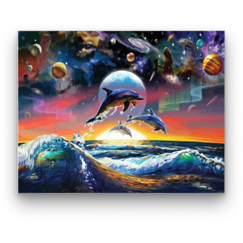 Ég és víz között - számfestő készlet – 40×50 cm (Keret nélkül) Ez a festmény az univerzum végtelen csodáit idézi meg, miközben a természet varázsát tárja elénk. A kép egy mesés utazás történetét meséli el, ahol az ég és a víz találkozik. A vibráló színek