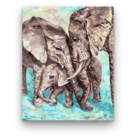 Elefánt család - számfestő készlet – 40×50 cm (Keret nélkül) A festmény meghitt és szeretetteljes hangulatot áraszt, amely azonnal megérinti a néző szívét. Egy történet bontakozik ki előttünk, ahol a család összetartása és gyengédsége kerül előtérbe. A me