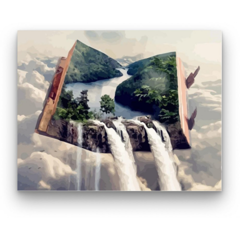 Életrekelt könyv - számfestő készlet – 40×50 cm (Keret nélkül) Ez a festmény egy varázslatos világba repít, ahol a valóság és a fantázia határai elmosódnak. Egy könyv lapjainak kinyílása felfedi a természet csodáit, mintha egy új történet kelne életre. A