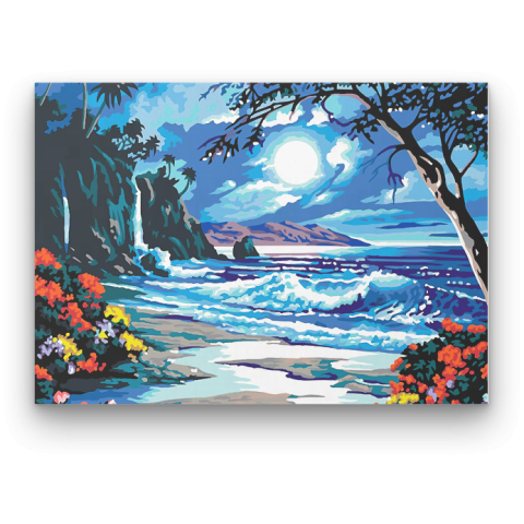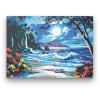 Esti Virágok - számfestő készlet – 40×50 cm (Keret nélkül) Ez a festmény egy nyugodt, holdfényes tengerparti éjszakát ábrázol, amely azonnal elvarázsolja a nézőt. A háttérben hullámzó tenger és az égbolt találkozása egy titokzatos történetet mesél el. Az