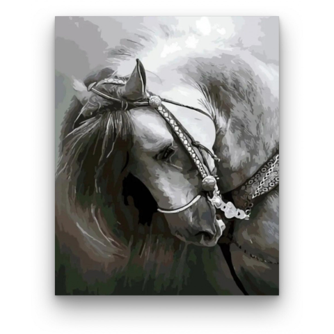 Fáradt paripa - számfestő készlet – 40×50 cm (Keret nélkül) A festmény melankolikus hangulata egy fáradt paripa nyugalmát idézi fel. A képen megjelenő történet a ló és lovasa közötti mély kapcsolatot sugallja, ahol a csendes pillanatok is beszédesek. A sz