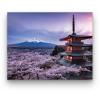 Fuji Hegy - számfestő készlet – 40×50 cm (Keret nélkül) A festmény megnyugtató harmóniát áraszt, ahogy a távoli hegyek és a cseresznyefák virágzása összefonódik. A kép mesébe illő történetet mesél el egy időtlen pillanatról, ahol a természet és az ember a