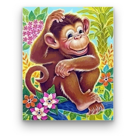 Gondolkodó kismajom - számfestő készlet – 40×50 cm (Keret nélkül) Ez a festmény vidám és játékos hangulatot áraszt, amely azonnal mosolyt csal az arcodra. A kismajom kíváncsisága és bája egy trópusi kaland ígéretét hordozza magában. Az élénk színek és a b