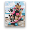 Gördeszkás buli - számfestő készlet – 40×50 cm (Keret nélkül) Ez a vidám festmény egy könnyed, gondtalan nyári nap hangulatát idézi elő. Egy különleges történet bontakozik ki, ahol a szabadság és kalandvágy uralkodik. A vibráló színek és a derűs háttér él