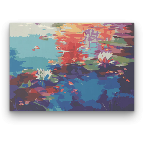 Gyönyörű Tavirózsák - számfestő készlet – 40×50 cm (Keret nélkül) A festmény élénk színei nyugalmat és harmóniát árasztanak, mintha egy varázslatos tó partján állnánk. Az elmosódott fények és formák mesés történeteket idéznek fel, melyek a természet titok