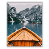 Hegyekben csónakázni - számfestő készlet – 40×50 cm (Keret nélkül) A festmény nyugalmat áraszt, mintha a természet szívébe hívna egy csendes utazásra. A kép egy történetet mesél el a magányos felfedezőről, aki a hegyek között barangol. A hideg kék és zöld