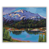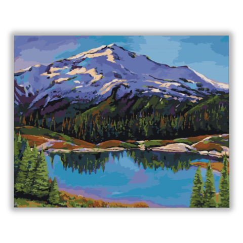 Hegyekben - számfestő készlet – 40×50 cm (Keret nélkül) Ez a festmény a hegyek csendes fenségét és az érintetlen természet varázsát tárja elénk. A kép mögött egy történet bontakozik ki, ahol a hegycsúcsok és a tükörsima tó találkozása mesél a békéről és n