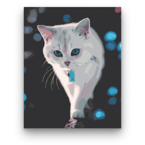 Hófehér kiscica - számfestő készlet – 40×50 cm (Keret nélkül) Készíts gyönyörű műalkotásokat, előzetes festő tudás nélkül! Éld át az alkotás gyönyörű pillanatait és varázslatos hangulatát! Akkor is gyönyörű festményeket hozhatsz létre, ha még nem festetté