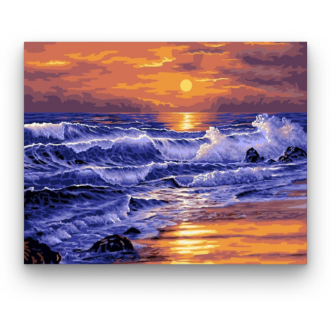 Hullámok - számfestő készlet – 40×50 cm (Keret nélkül) Ez a festmény a nyugodt tengerparti naplemente varázsát hozza el, ahol a hullámok halk zúgása megnyugtatja a lelket. A képen egy történet bontakozik ki az elmúlás és az új kezdet találkozásáról. A vib