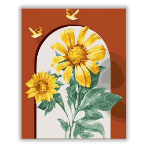 Hulló virágszirom - számfestő készlet – 40×50 cm (Keret nélkül) A kép vibráló energiát sugároz, miközben a napraforgók életre kelnek a vásznon. Egy rejtett történet bontakozik ki a természet csendes szépségéről és az idő múlásáról. A meleg sárgák és zölde