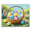 Húsvéti Tojás Kosár - húsvéti számfestő készlet – 40×50 cm (Keret nélkül) Készíts gyönyörű műalkotásokat, előzetes festő tudás nélkül! Éld át az alkotás gyönyörű pillanatait és varázslatos hangulatát! Akkor is gyönyörű festményeket hozhatsz létre, ha még