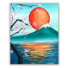 Japán bíbor hold - számfestő készlet – 40×50 cm (Keret nélkül) A festmény nyugodt harmóniát áraszt, mintha egy békés hajnalon sétálnánk a természet lágy ölén. A látvány mögött megbúvó történet a csendes szépség erejét meséli el, ahol minden ecsetvonás egy