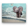 Játékos elefánt - számfestő készlet – 40×50 cm (Keret nélkül) A festmény vidám, játékos hangulatot áraszt, amely mosolyt csal a néző arcára. Egy fiatal elefánt kalandját meséli el a hullámok között, miközben egy madár szárnyal felette. A türkizkék tenger