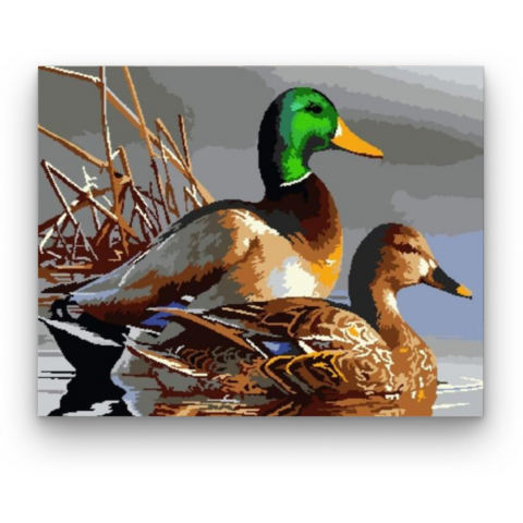 Kacsák - számfestő készlet – 40×50 cm (Keret nélkül) A festmény nyugodt, békés hangulatot áraszt, mintha egy csendes tóparti pillanatot örökítene meg. A két kacsa közötti kapcsolat és az őket körülvevő természet különleges történetet mesél el. A színek ha