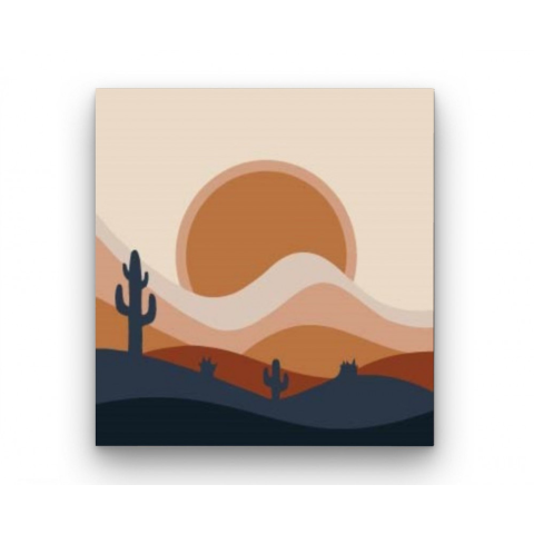 Kaktusz Város - gyerek számfestő készlet – 20×20 cm (Keret nélkül) Ez a kép egy varázslatos kaktusz várost ábrázol a naplementében, ahol a kaktuszok vidáman integetnek a napsugaraknak. A meleg narancs és bézs árnyalatok igazi mesebeli hangulatot teremtene
