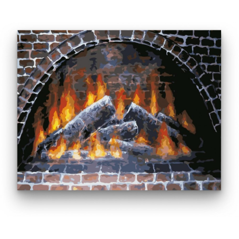 Kandalló - számfestő készlet – 40×50 cm (Keret nélkül) A kandalló melegsége és a lángok tánca az otthonosság érzését kelti. A kép egy csendes, meghitt estét idéz, ahol a tűz fénye körül gyűlnek össze a családtagok. A narancs és vörös árnyalatok dinamikusa
