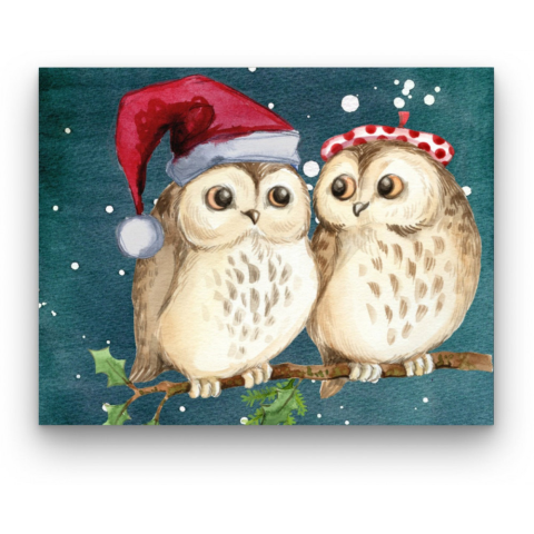 Karácsonyi baglyok - számfestő készlet – 40×50 cm (Keret nélkül) A kép meghitt és ünnepi hangulatot áraszt, amely a tél csendes varázsát idézi. A két bájos bagoly története mintha a karácsonyi csodákról mesélne, ahogy együtt ülnek a hópelyhek alatt. A mél