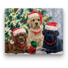 Karácsonyi kutyusok - számfestő készlet – 40×50 cm (Keret nélkül) A kép melegséget és ünnepi örömöt áraszt, ahogy a három kutyus vidáman figyel a télies háttér előtt. A történet mesés hangulatot kelt, mintha egy varázslatos karácsonyi este elevenedne meg.