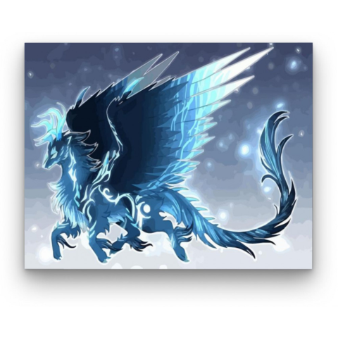 Kék sárkány - számfestő készlet – 40×50 cm (Keret nélkül) Ez a festmény egy misztikus világba repít, ahol a varázslat és a fantázia találkozik. Egy titokzatos történet bontakozik ki, melyben egy égi teremtmény szárnyal az éjszakai égbolton. A kék és fehér