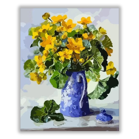 1 kép Számfestő Kék vázában sárga virágok - számfestő készlet