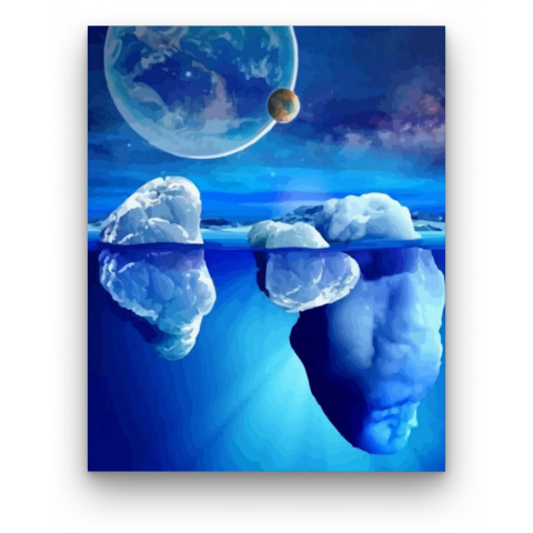 Kékség - számfestő készlet – 40×50 cm (Keret nélkül) A festmény mély, nyugodt kékjei az univerzum végtelenségét idézik meg, elmerítve a nézőt a csendes elmélkedésben. Egy távoli világ tárul elénk, ahol az ég és víz találkozása egy titokzatos történetet me