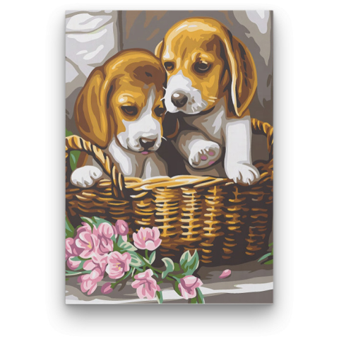 1 kép Számfestő Kiskutyák a Kosárban - számfestő készlet