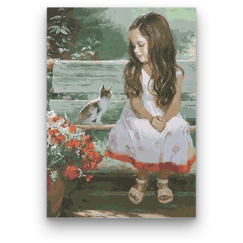Kislány és Cica - számfestő készlet – 40×50 cm (Keret nélkül) Készíts gyönyörű műalkotásokat, előzetes festő tudás nélkül! Éld át az alkotás gyönyörű pillanatait és varázslatos hangulatát! Akkor is gyönyörű festményeket hozhatsz létre, ha még nem festetté