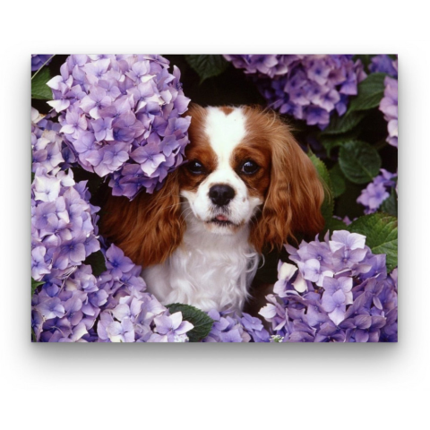 1 kép Számfestő Kutya És Virágok - számfestő készlet