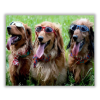 Kutya party - számfestő készlet – 40×50 cm (Keret nélkül) A kép vidám és játékos hangulatot áraszt, amely mosolyt csal a néző arcára. Három kutya, akik mintha egy titkos bulira készülnének, napszemüvegben élvezik a napfényt. A zöld háttér frissességet és